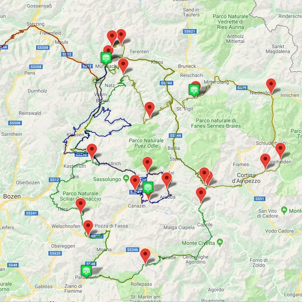 2022 Dolomiten AndersT: Dolomiten AndersT wird vom Hotel Leitner organisiert. Es geht durch die Dolomiten aber halt etwas AndersT und auch etwas zügiger als bei den normalen Dolomiten Touren. Streckenführung: SEHR Anspruchsvoll da sehr Zügig Streckenprofil: Einspurig, Passtraße, Bundesstraße Strecken Info: 2* ca. 350Km |