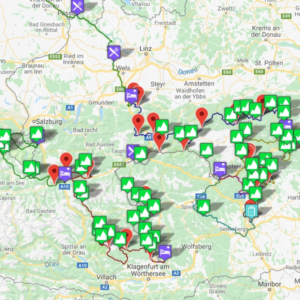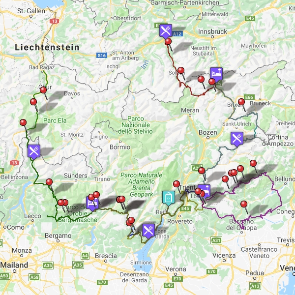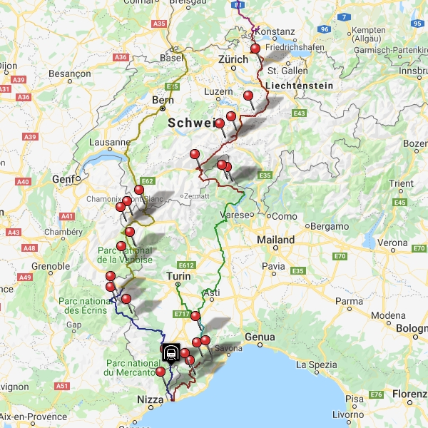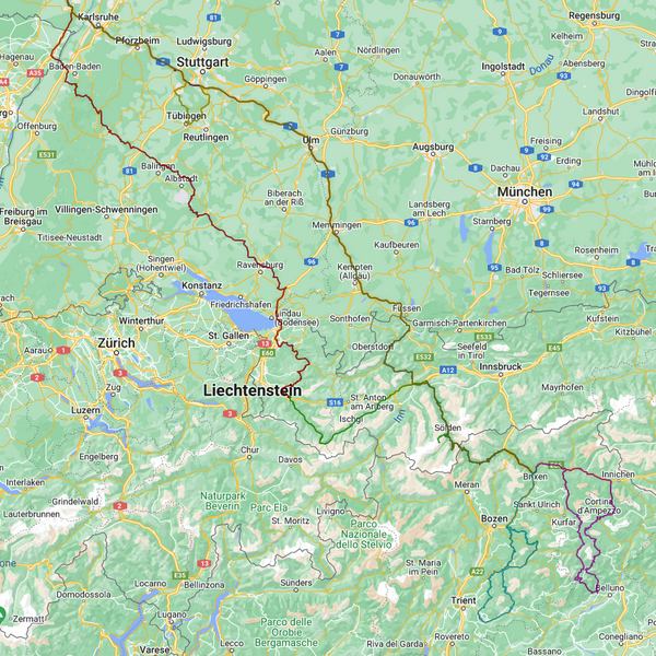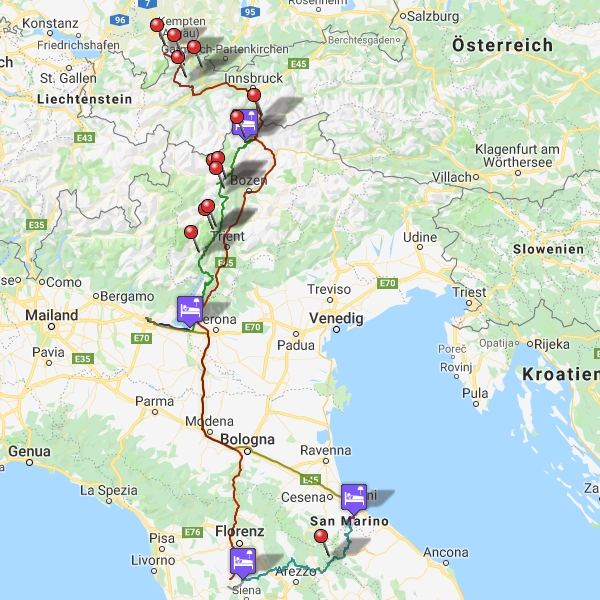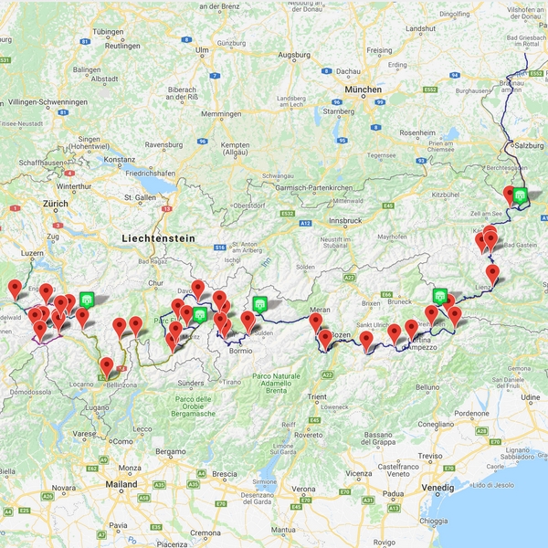 Alpen -> I -> A -> CH -> F -> SLO -> E .... |