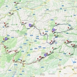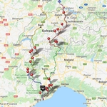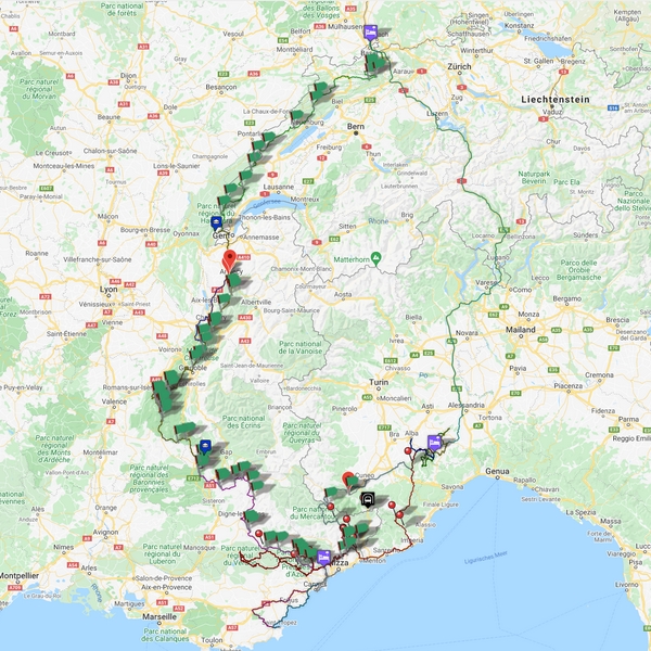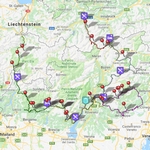 2017 Grandes Alpes: Die Tour ist ausführlich im Tourbericht beschrieben daher hier nur die Karte. Streckenführung: Gut ausgebaute Straßen Streckenprofil: 37 Pässe 3 Schluchten und mehr als 42.000 Höhen Meter Strecken Info: 2120km durch die CH und FR. |