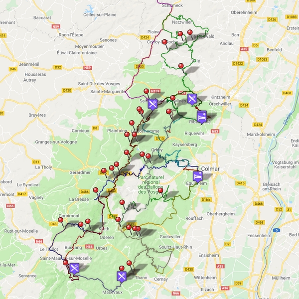 2024 /2022 / 2020 / 2019 / 2014 Vogesen: Für Diejenigen, die sich mal artgerecht durch traumhafte Kurven bewegen möchten, ein Muss. Die Karte beinhaltet Tages-Touren und die entsprechenden Stellen für das leibliche Wohl. zum Tourbericht 2014 Streckenführung: Kurvig /Schmal / Nebenstraßen Streckenprofil: Pässe Strecken Info: Touren mit ca 200Km bis 300Km |