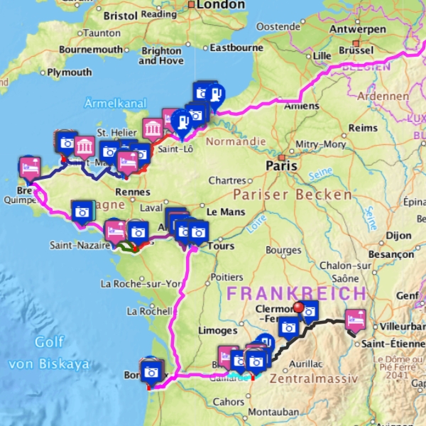 2025 Provence - Ardèche - Bordeaux - Loire Tal - Bretagne - Normandie Eine außergewöhnliche Tour mit sehr vielen Sehenswürdigkeiten Nur was zum genießen Frankreich mit seinen unterschiedlichsten Landschaften. Streckenführung:Einfach für jederman Streckenprofil: Alles Strecken Info: 3300 km |
